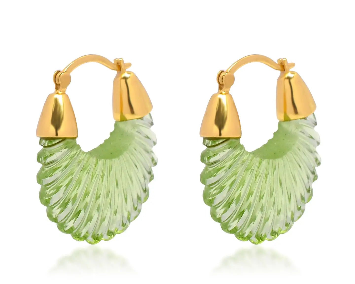 The Ettienne is formed of a carefully cut hydro glass in the most stunning of green tones. They are the perfect all round earring, perfect for both day and evening wear. They are our best selling style and a part of our core collection. Metal is 22 carat gold on sterling silver.