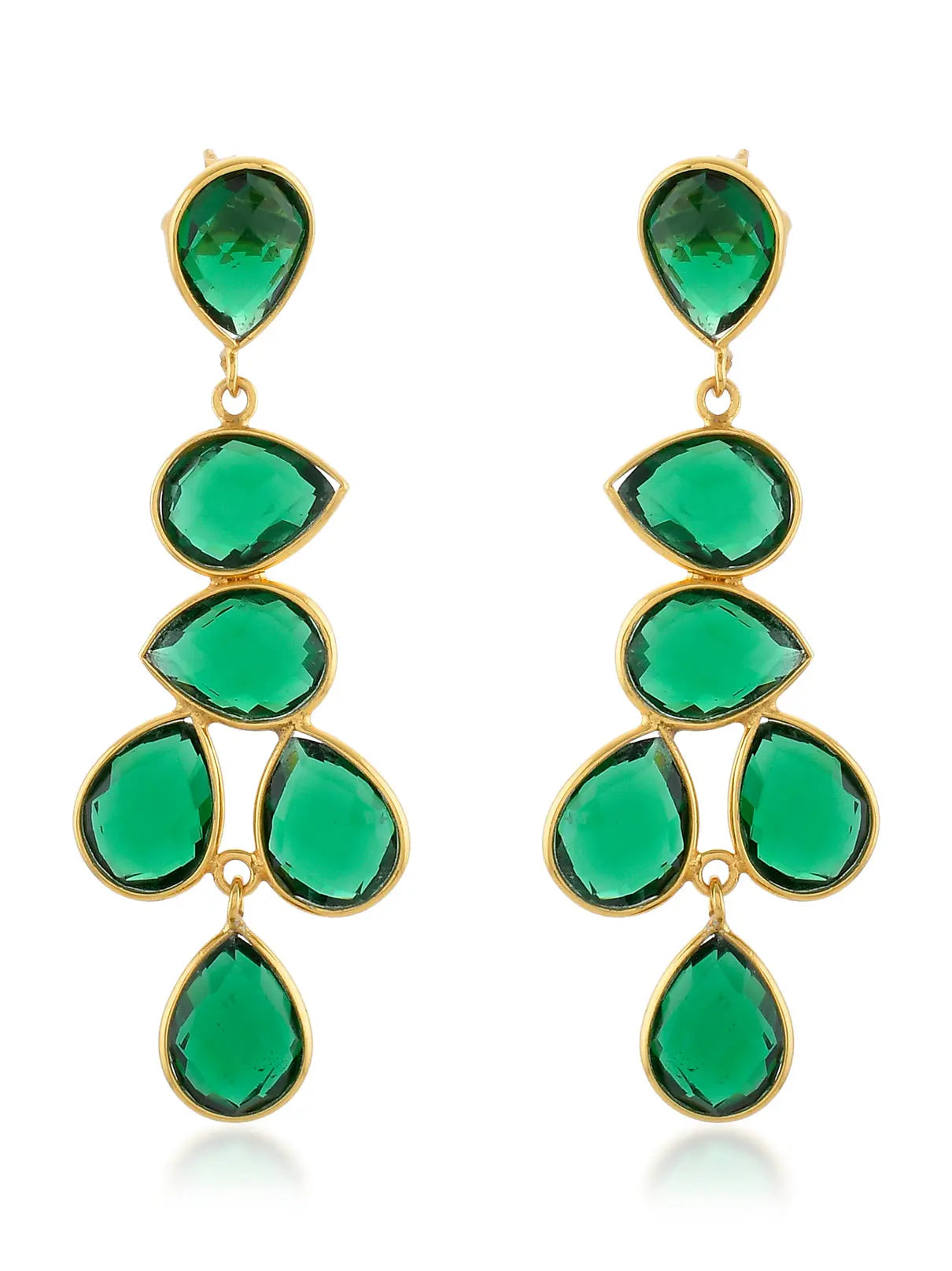 The Sheena earrings are a wonderful elegant and statement earrings. Formed of six oval facetted stones, it is the perfect style to dress up an outfit and must have for those special events. 22 carat gold on sterling silver.
